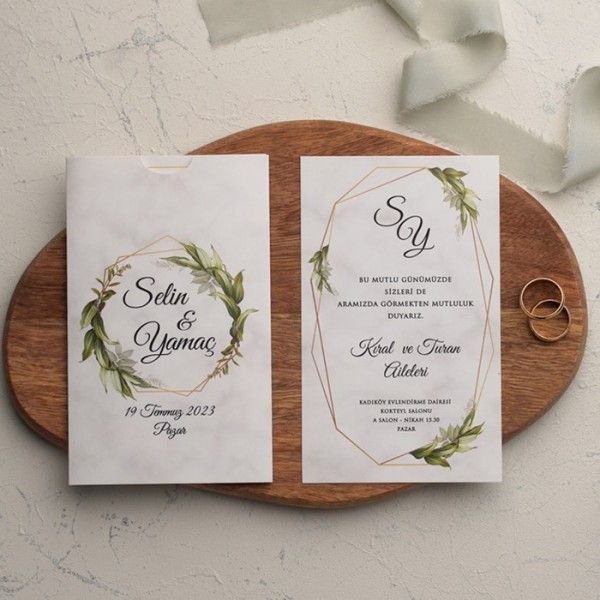 Davetiyelerde zarf ve aksesuarları fiyata dahildir.