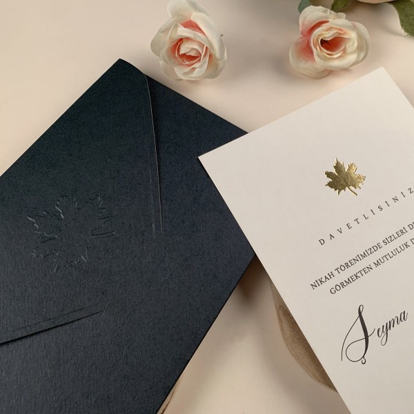 Kendinden zarfı olarak belirtilen davetiyelerin ayrıca zarfı yoktur. Bu davetiyeler zarf şeklinde dizayn edilmiştir.
