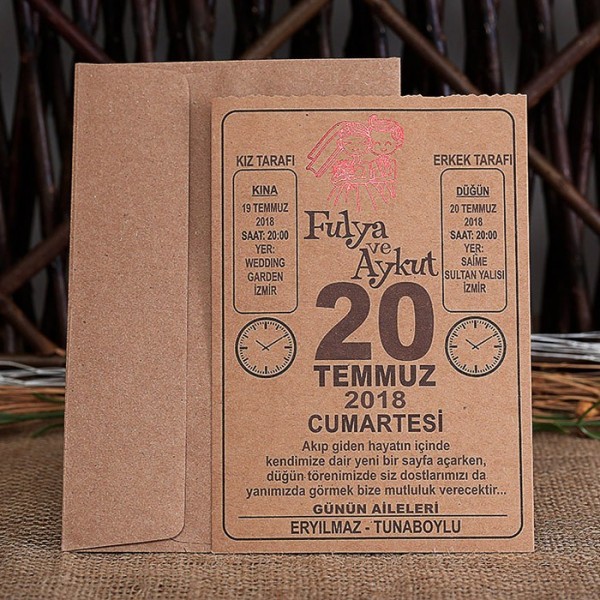 Davetiyelerde zarf ve aksesuarları fiyata dahildir.