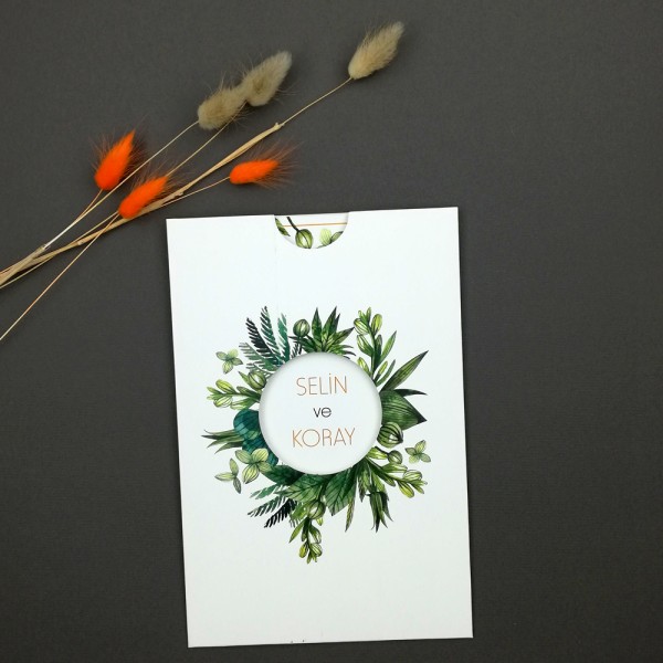 Kendinden zarfı olarak belirtilen davetiyelerin ayrıca zarfı yoktur. Bu davetiyeler zarf şeklinde dizayn edilmiştir.