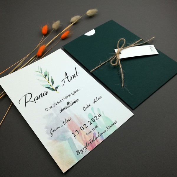 Davetiyelerde zarf ve aksesuarları fiyata dahildir.