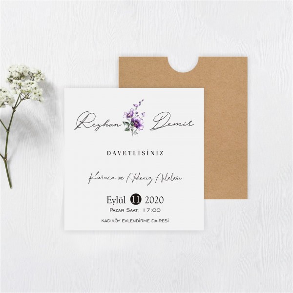 Davetiyelerde zarf ve aksesuarları fiyata dahildir.