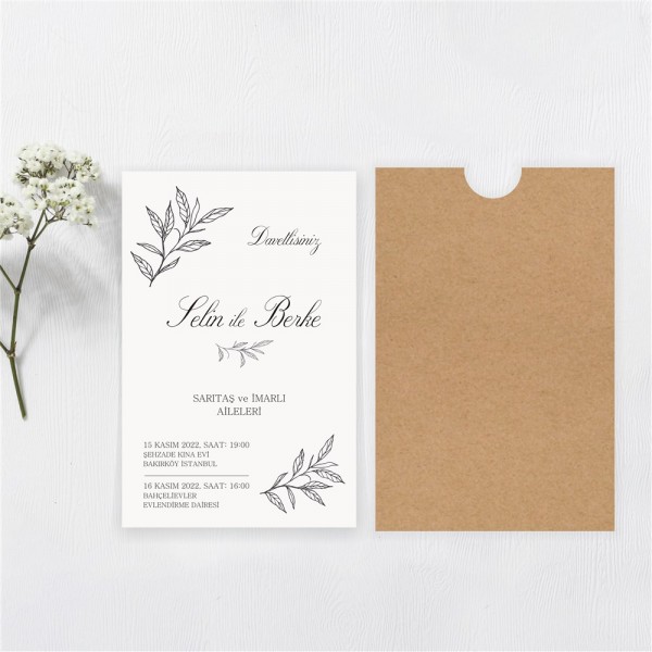 Davetiyelerde zarf ve aksesuarları fiyata dahildir.