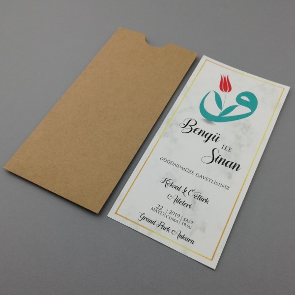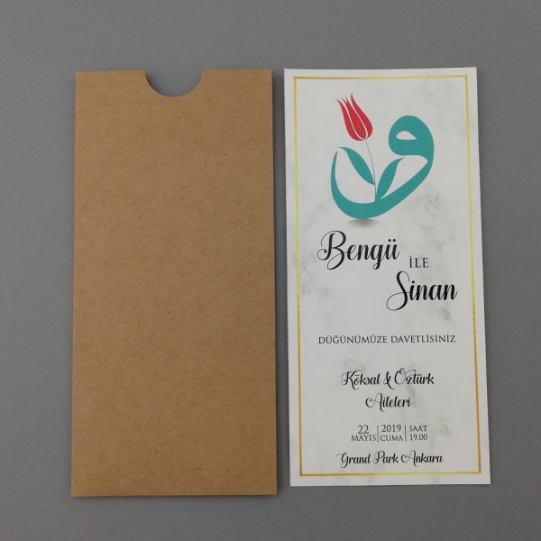 Davetiyelerde zarf ve aksesuarları fiyata dahildir.